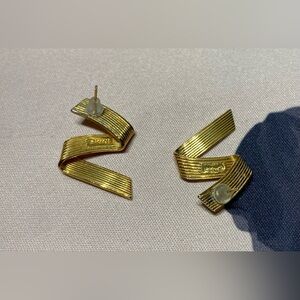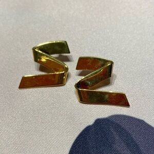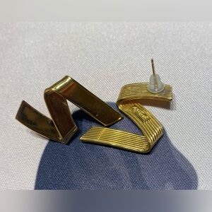 Vintage 1980s Monet Zig Zag Gold Ribbon Earrings
