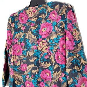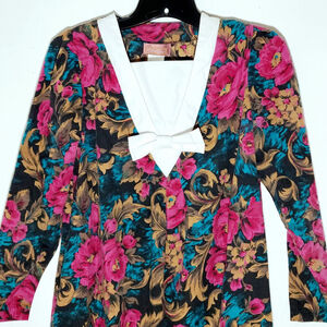 Vintage 1980s Multicolor Floral Worthington Dress Size 2 Petite. This awesome dress screams vintage 80s church dress - vivid floral pattern, bright white smock collar with pleating underneath, shoulder pads & small pleats to add that little puff to top of sleeves, long sleeves, polyester/ rayon blend, and no lining. Fabric is slightly faded from age, but in overall great condition for its age.