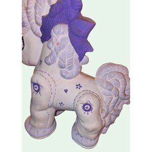 This vintage My Pretty Pony figure is a delightful collectible, showcasing intricate detailing with purple hair and flower accents. Its nostalgic design offers a charming addition to any collection, appealing to both enthusiasts and those with a penchant for retro toys.