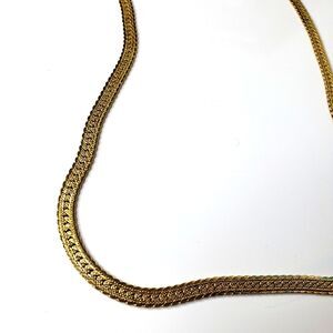 Vintage 1980's Napier Gold Tone Herringbone 22” Etched Both Sides Necklace