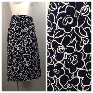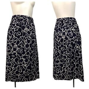 Vintage 1980s Navy Blue and White Floral Skirt with Pockets / Women’s M/L