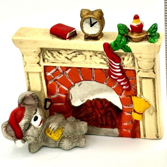 Vintage 1980s Night Before Christmas Mouse & Fireplace Ceramic Candle Holder