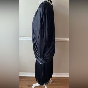 Vintage 1980s Nightworks Black Fringe Dress Wrap 80’s Plus Size 14 XL Dropwaist