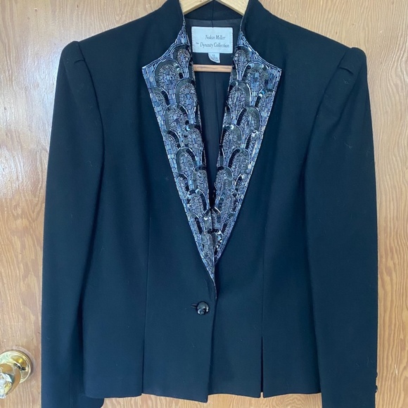 Vintage 1980s Nolan Miller for DYNASTY Black Wool Jacket w/Jet Beaded lapels