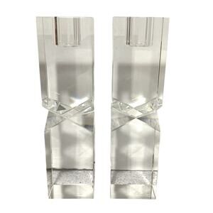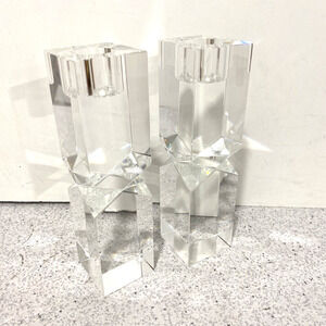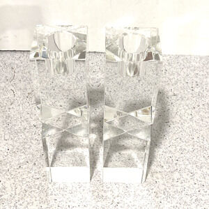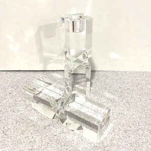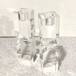 Vintage 1980s Oleg Cassini Lexington Crystal Candlestick Holders Clear Geometric