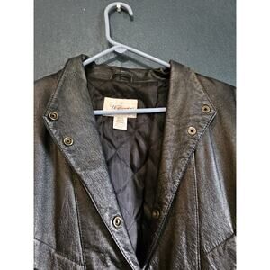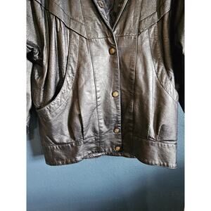 Vintage 1980s Oversized Black Leather Batwing Jacket Petite Medium