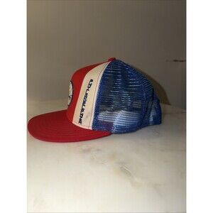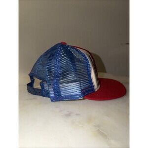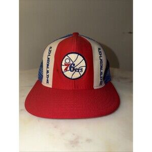 1980s Philadelphia 76ers AJD Lucky Stripes mesh trucker-style hat with a snapback closure.