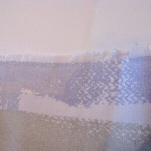 Vintage Pink Panther sheet shows the cat in the process of painting against a backdrop of paint swipes in watered shades of pink, blue and gold. Cotton/polyester muslin.