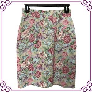 Vintage 1980s Pastel Floral Pencil Skirt Cotton Made in USA SMALL