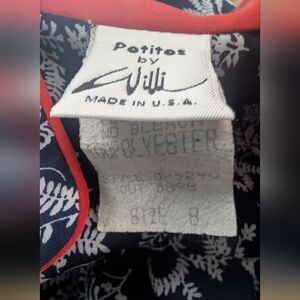 Vintage 1980s Petites by Willi Red Blue Midi Breezy Dress Notched Collar