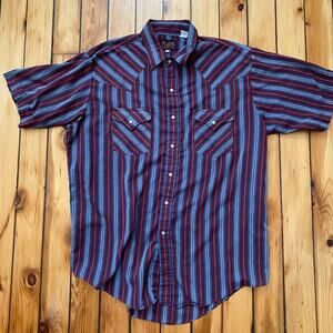 Vintage 1980s Plains Western Wear Pearl Snap Button Up Short Sleeve Shirt L