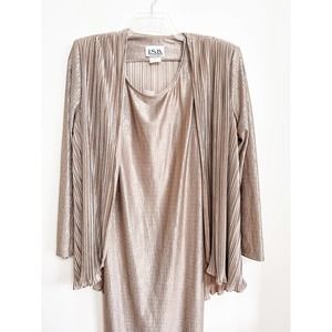 Vintage 1980s Pleated Pewter Dress and Jacket Set