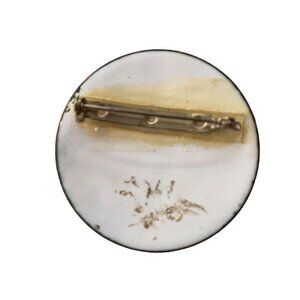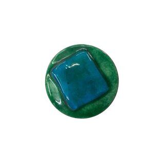 Vintage 1980s Porcelain Brooch Pin Mod Design Blue Green Glazed Copper Trim 2" Diameter