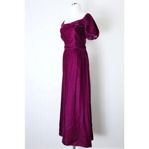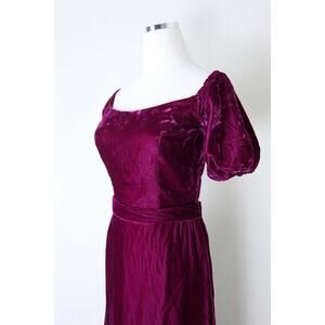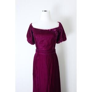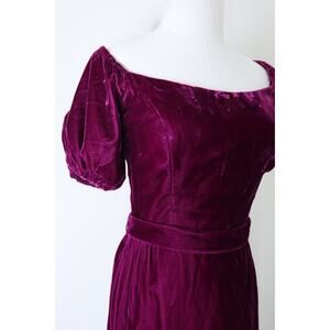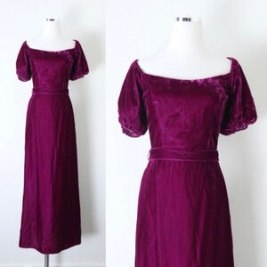 Vintage 1980s Priscilla of Boston Velvet Puff Shoulder Gown Maxi Dress Raspberry