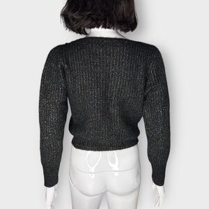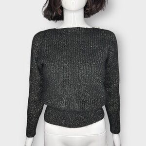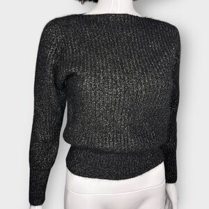 Vintage 1980s Prunelle Wool, Angora, Black & Gold Metallic Pullover Sweater