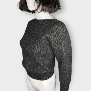Prunelle knit sweater with gold metallic threads & a three button detail on the top left of the sweater