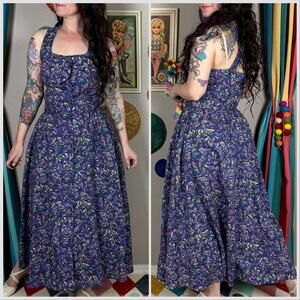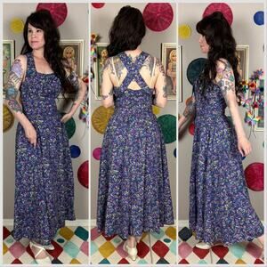 Vintage 1980s Purple Floral Crisscross Back Midi Sundress