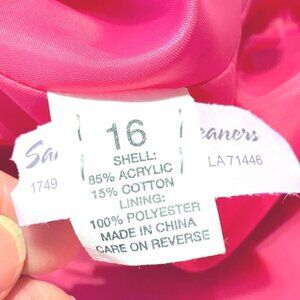 This vintage RL Richard NY tweed jacket captures the essence of 1980's feminine style. Its vibrant pink tones and raw edge detailing exude charm and sophistication. A tailored fit with button front closures and textured fabric makes this timeless piece a standout, perfect for expressing unique, nostalgic fashion. Size 16.