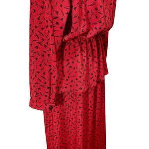 Vintage 1980s Red & Black Handmade Chiffon Blouson Secretary Dress Size 8 Medium