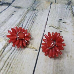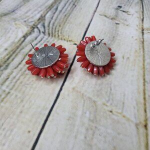 Vintage 1980s Red Celluloid Flowers Pierced Earrings 1.5 Inches