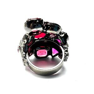 Vintage 1980s Robert Sorrell Cocktail Cluster Ring—Massive Red Pink Rhinestones