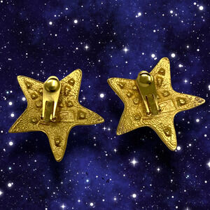 Vintage 1980's Robin Star Gold Tone Celestial Earrings Clip On Avant Garde Mogul