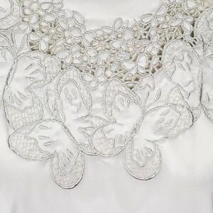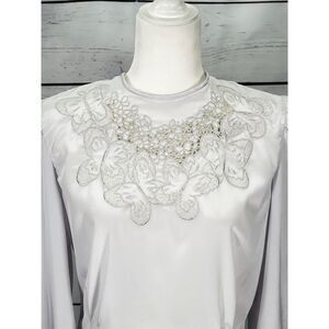 Vintage 1980s Romantic Satin Butterfly Floral Embroidery Lace Neck Blouse MD/LG
