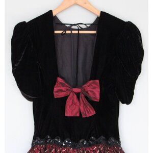 * Vintage 1980s SCOTT McCLINTOCK Black Velvet & Burgundy Taffeta Open Back Party Dress