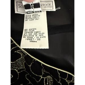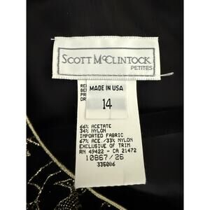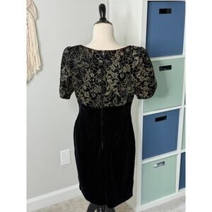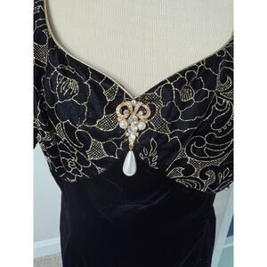 Vintage 1980s Scott McClintock Black Velvet Gold Brooch Cocktail Short Dress 14