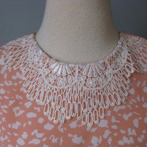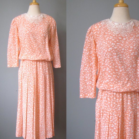 Vintage 1980s Secretary Dress Peach and White Abstract Print blouson size M