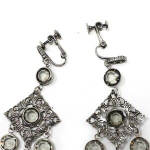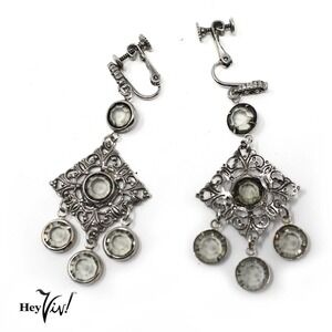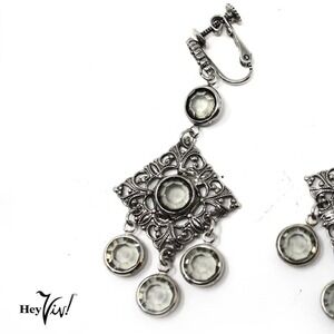 Vintage 1980s Silver Fancy Dangle Clip On Earrings New/Old Store Stock -Hey Viv