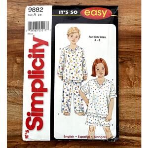 Vintage 1980s Simplicity 9882 Sewing Pattern Toddler Size 3 - 4 Pajama Set Top & Pants or Shorts COMPLETE