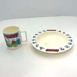Vintage 1980’s Smurfette/Smurf Kids Tea Set Cup & Plate Set