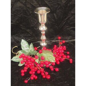 This beautiful candleholder is crafted of solid brass with a silver-toned finish, made by IHI in India in the 1980's. It will add the perfect touch of elegance to your holiday decor and versatile enough to be used any time of the year. Approximate measurements: 8.25 in x 3.5 in x 3.5 in. Please see the provided photos for further details. (Artificial plants not included.)