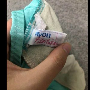 vintage, circa 80s. Avon Fashions. Fits size 4-6 (34 inch bust). Cut-out back. peplum detailing. Note that this is definitely more of a "sunbathing" swimsuit and not one for swimming/lots of athletic activities, as it is strapless. excellent vintage condition.