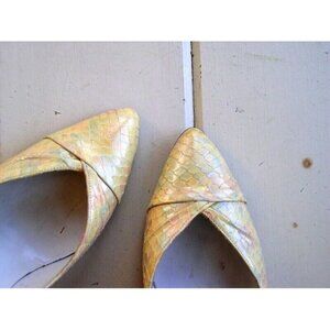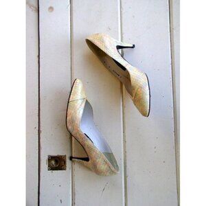 Vintage 1980s Stuart Weitzman Heels Womens Sz 6 Yellow Pastel Snakeskin Pumps