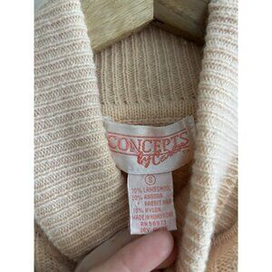 Vintage 1980s Sweater Vest Peach Knit Turtleneck Top Angora Lambswool Small