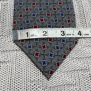 Vintage 80s Swing red and blue geometric print silk tie. Previously loved and in excellent condition. Non smoking and pet free house.
