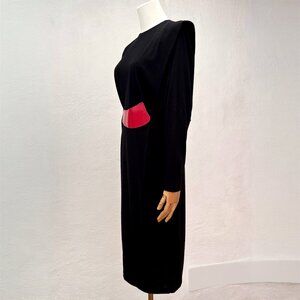 Vintage 1980s Sybil California Long Sleeve Orlon/Wool Midi Sheath Dress Size 6