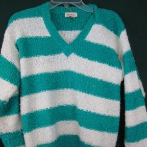 Vintage 1980's Tamaron Aqua Striped Pullover Sweater