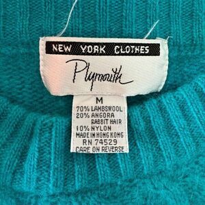 Vintage 1980s Teal Blue Angora Lambswool Chunky Cable Knit Sweater Sz M