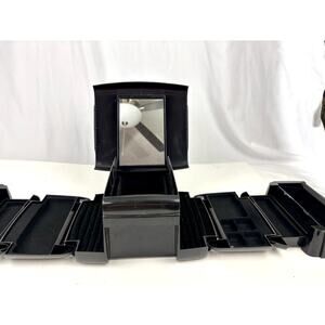 Vintage 1980s The Jewel Kit Expandable Fold-Out Jewelry Box Black USA Made