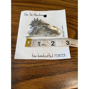 Vintage 1980’s The Tin Woodsman pewter brooch.scene is mountains and sun. Good pre-owned condition. Doesn’t look used, still on card. Made in Oregon.