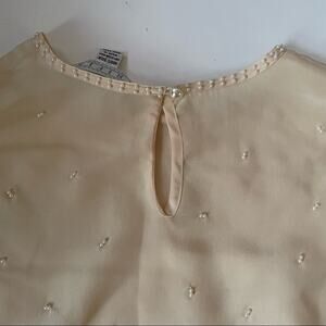 Vintage 1980s Trifles Silk Blouse Pearls All Over Elegant High Neck Cream 10