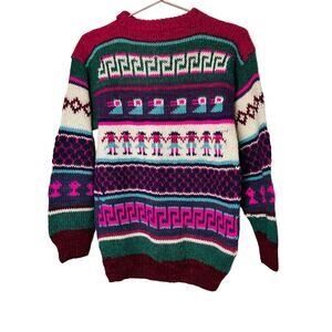 Vintage 1980s Unbranded Unisex Geometric People Purple Pink Crewneck Sweater