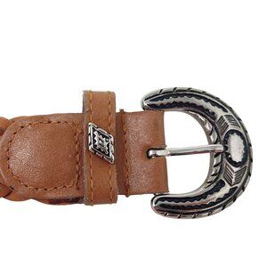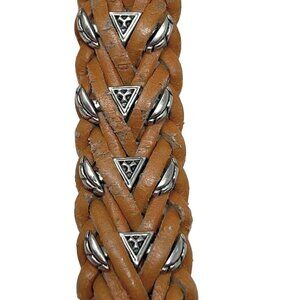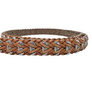 Vintage 1980's Unisex Omega Western Belt Size L Braided Leather Metal Accents
