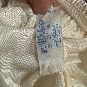 #Vintage1980s #VanityFair #VintageSlip #WhiteSlip #LaceTrim #FullSlip #SlitSlip #RetroStyle #CozyVintage #VintageLingerie #80sFashion #BohoChic #RetroIntimates #VanityFairCollection