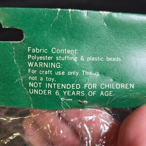 Fabric: muslin body with plastic bead fill, painted vinyl face and boots
