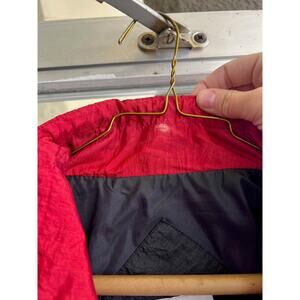 Vintage 1980's tricolor windbreaker jacket with aztec patterned trim on the front and sleeves. There are no major stains, holes, or tears. The tag says size large. Please check measurements before purchasing!