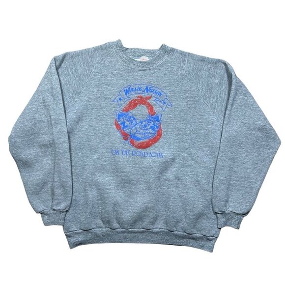 Vintage 1980s Willie Nelson On The Road Again Graphic Crewneck Sweatshirt